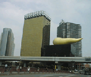 【アサヒ本社ビル】 おなじみ浅草のモニュメントとして定着してきたアサヒ本社ビル。 平成元年にお目見えしました。 一般の人が社内を見学はできませんが、21階、22階には隅田川の景色をみながらのイタリア料理を味わえるレストランがある。 右隣の建物は聖火をモチーフにした吾妻橋スーパードライホール。